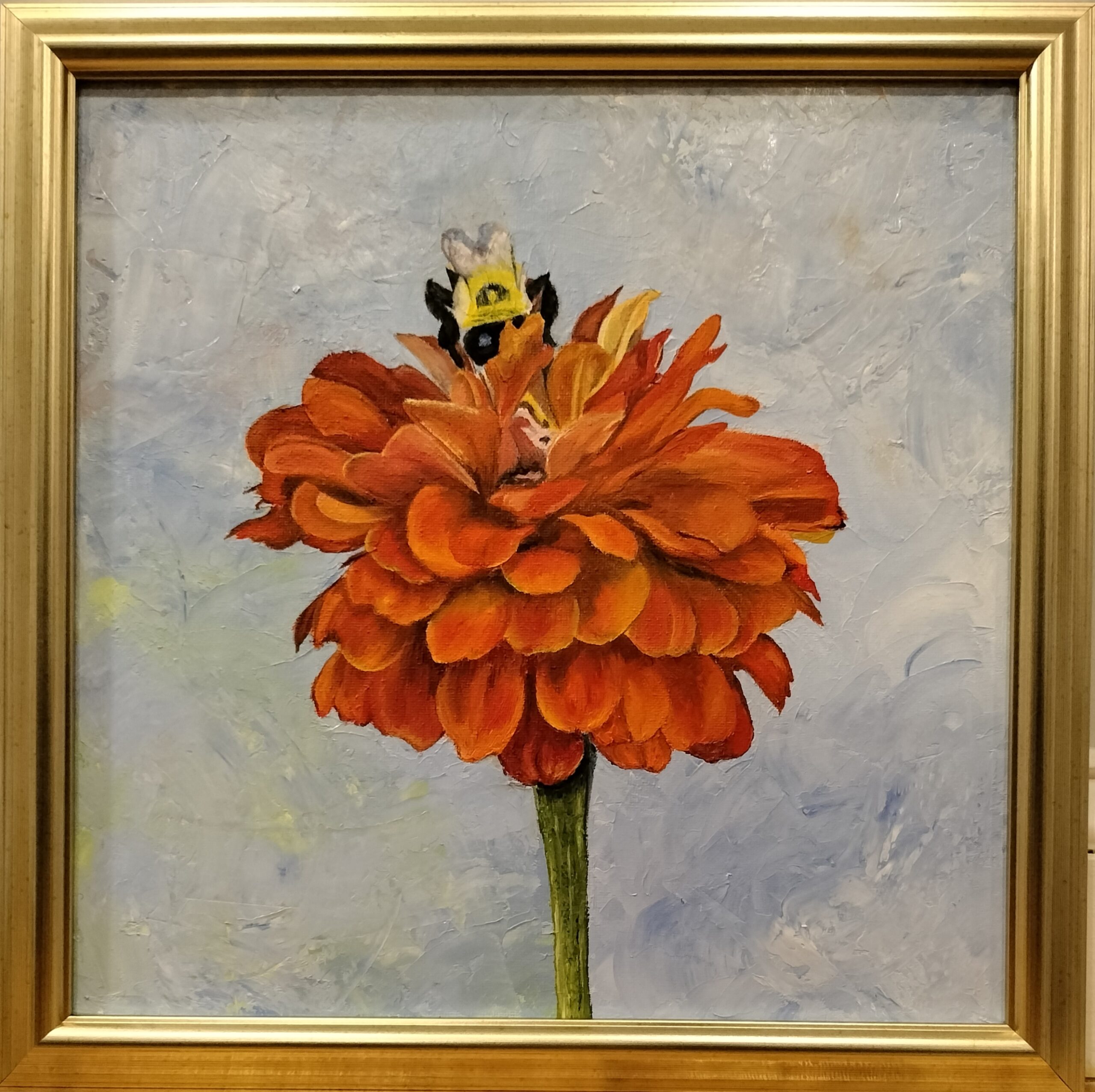 This bee is enjoying every moment of his time on this lovely red zinnia. He certainly knows how to Bee Happy! I hope he makes you happy too!