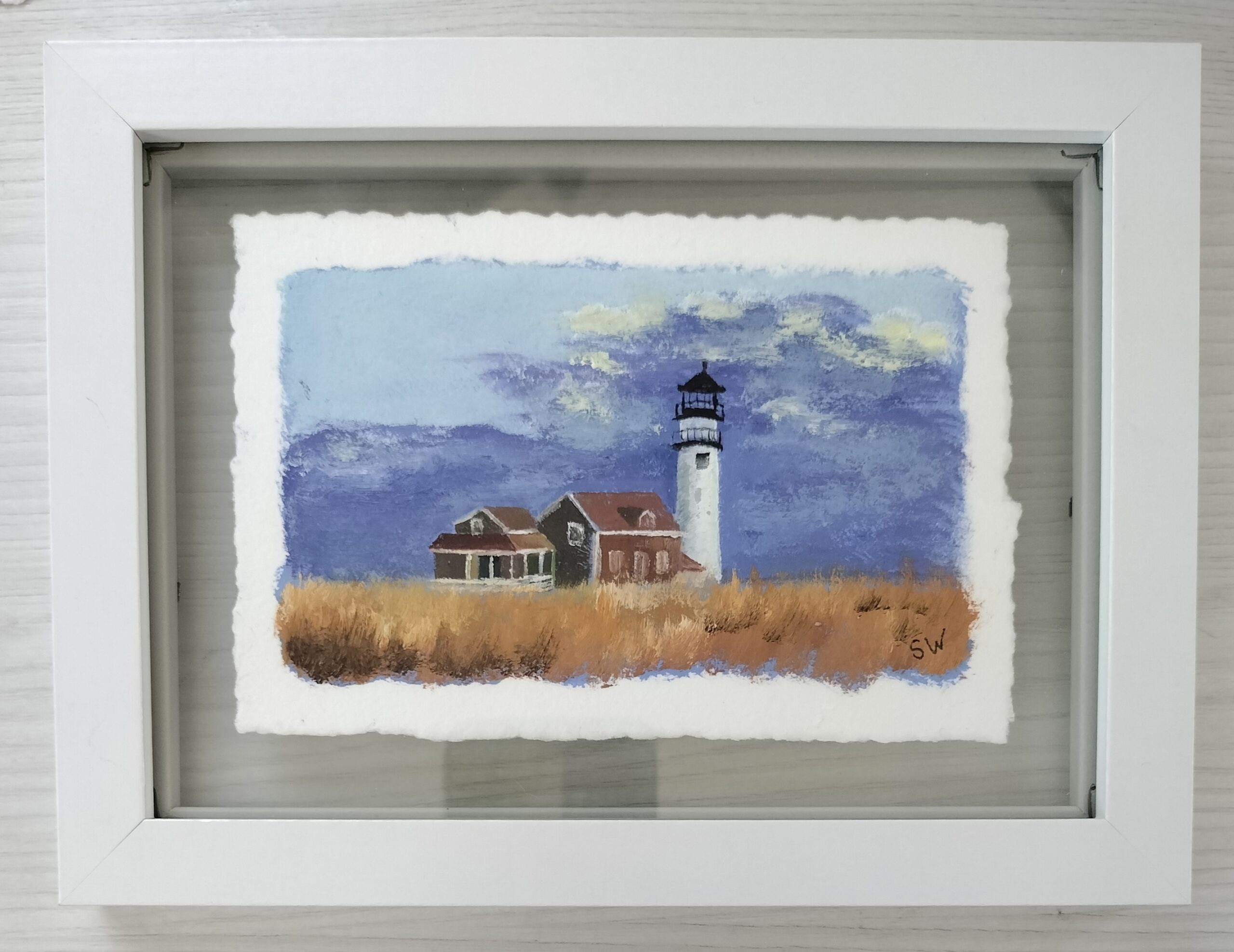 This mini-painting features a stunning view of Highland Lighthouse in North Truro on Cape Cod.