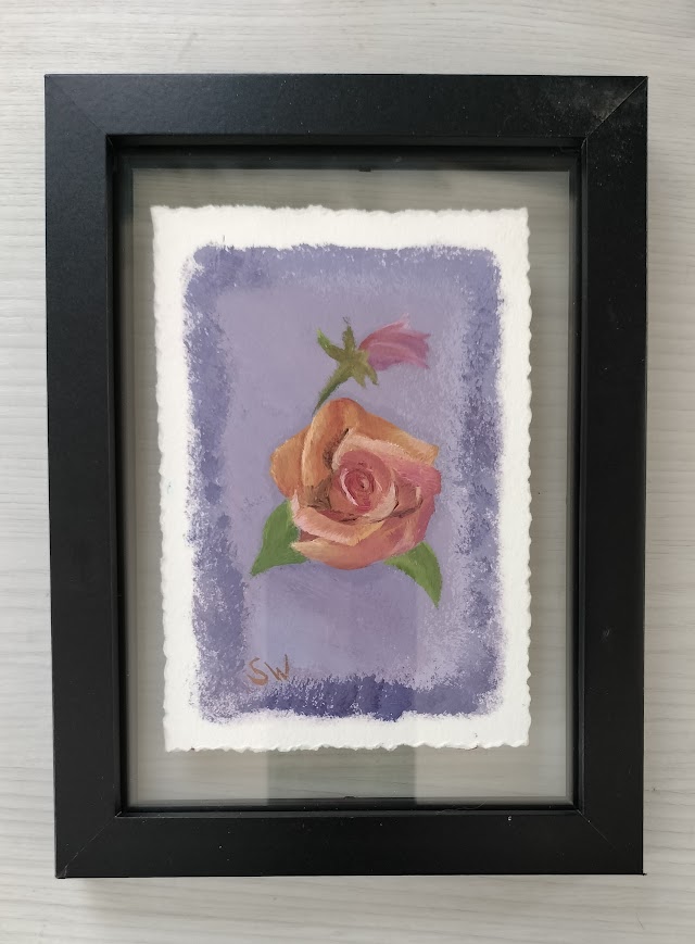 I hope you enjoy my collection of mini paintings.  These paintings are oil paint on oil paper measuring  3″ x 5″.  The piece is finished with a 6″ x 8″ floating frame.  It has a saw tooth hanger for displaying on the wall or it can be displayed on a stand.